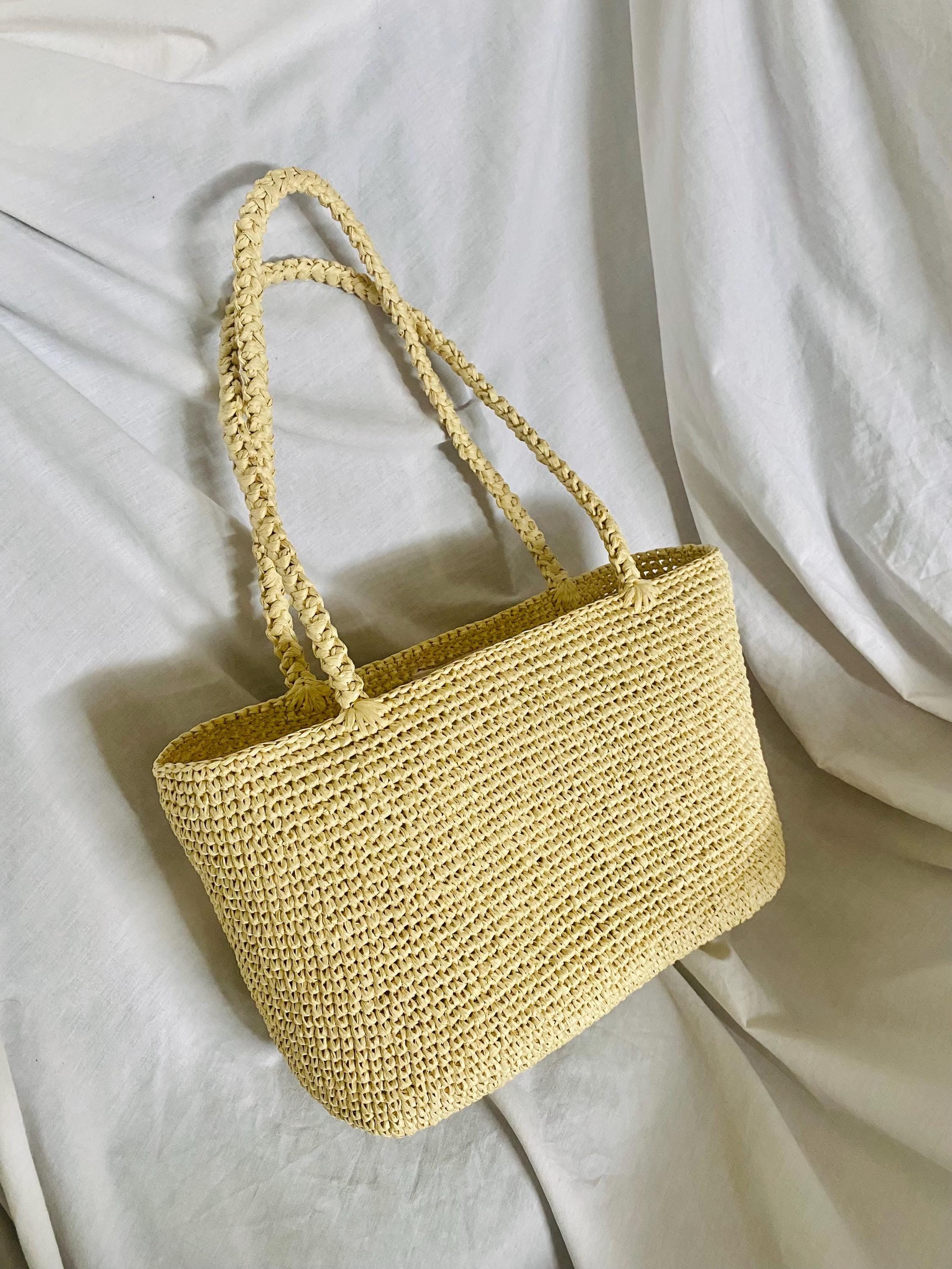 Elin is a delicately hand crocheted tote bag made of natural Raffia. Elin has a closed weave throughout and is an open-top style bag with an incredibly roomy inside. Elin is a perfect accessory to be used for your shopping, picnics in the park, your trips to the beach and so much more. She is perfect for holding all your day-to-day or evening essentials.