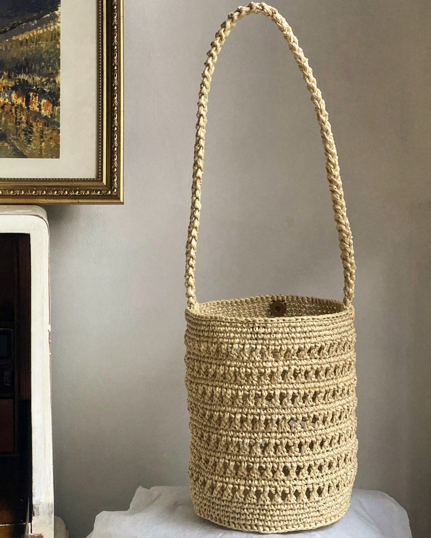 Care for Manon: It is strongly recommended to spot clean raffia with a very small amount of water only as needed, do not submerge Raffia in water as it will lose its shape. As well as it's not recommended to overload Raffia bag, it can stretch out the bag's original shape. While storing your bag, stuff the bag with plain, colourless tissue paper to support its original shape.