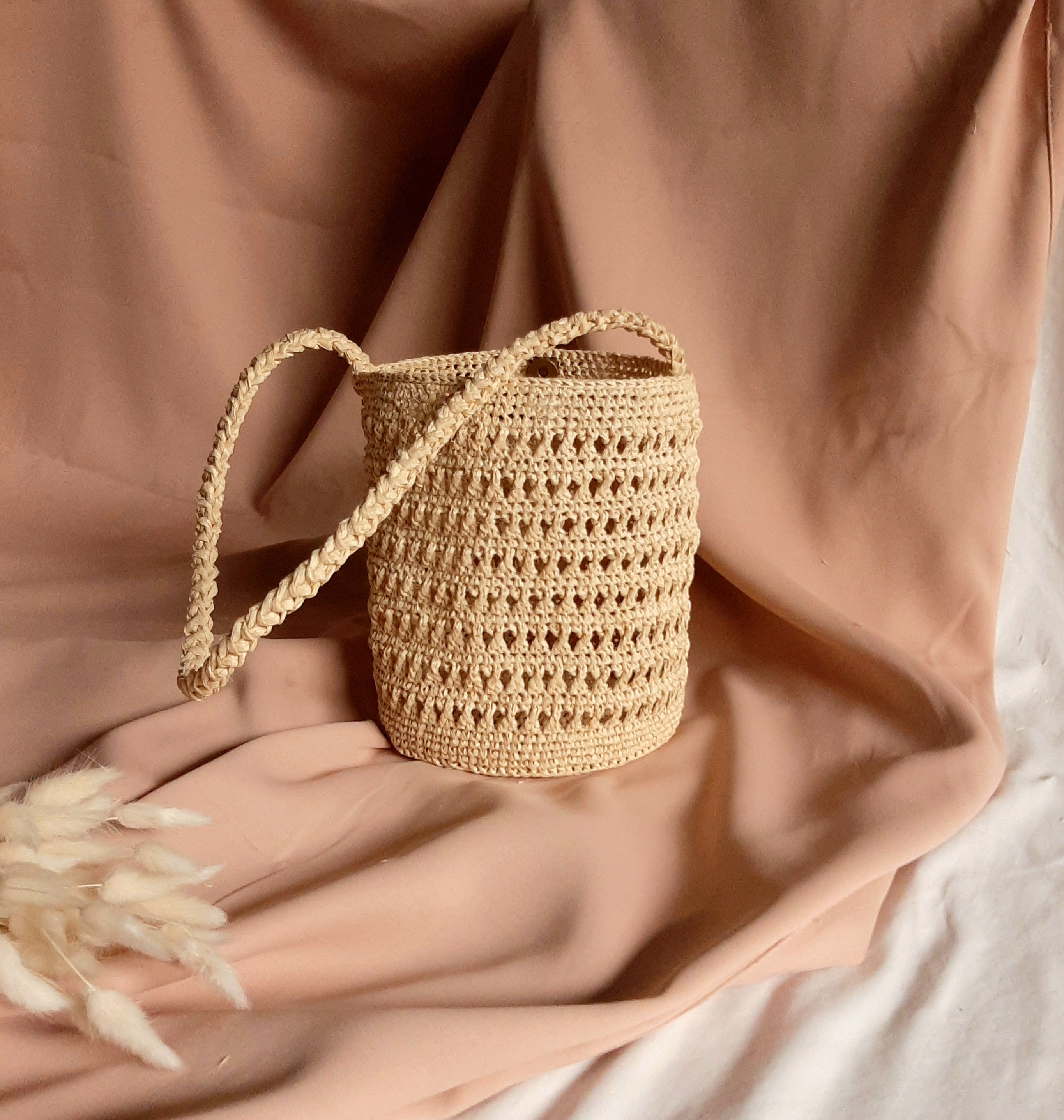 Delicately hand crocheted from natural Raffia, Manon is a basket turned into a handbag, the traditional basket shape is used to create a delicate handbag for your everyday use. Manon is an open weave basket bag giving a delicate lace-like look to its overall shape.