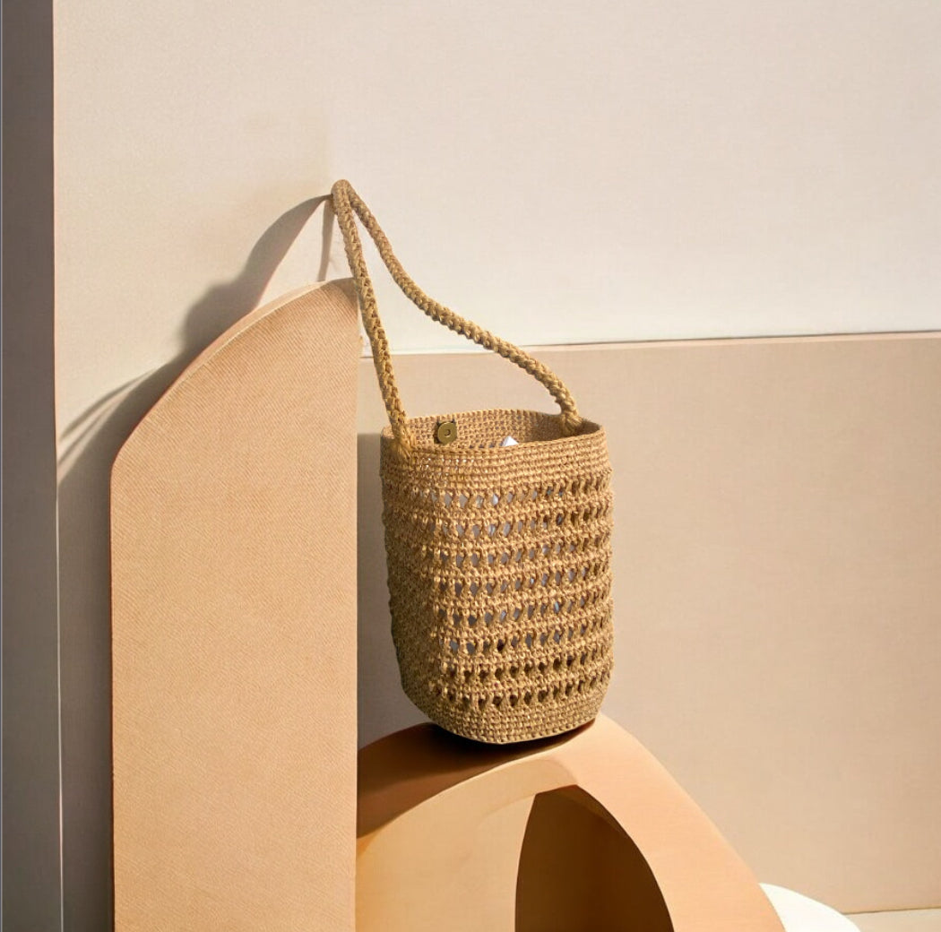Delicately hand crocheted from natural Raffia, Manon is a basket turned into a handbag, the traditional basket shape is used to create a delicate handbag for your everyday use. Manon is an open weave basket bag giving a delicate lace-like look to its overall shape.